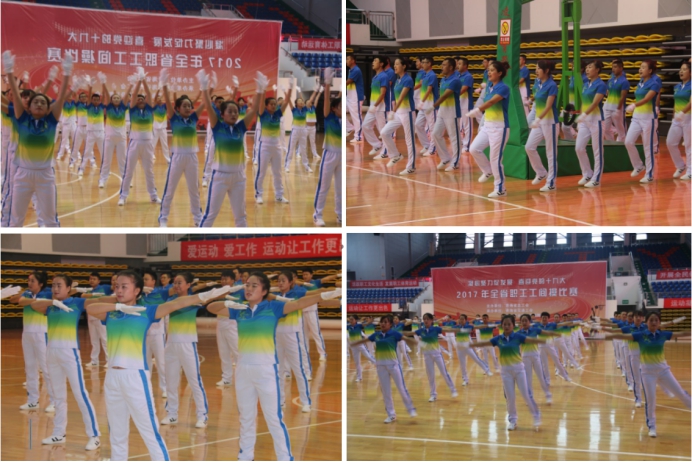 (集團黨群部 訊 劉麗萍/文攝)為認真貫徹落實全民健身綱要精神,喜迎黨的十九大順利召開,營造青海物產(chǎn)"全民健身、快樂工作、健康生活"的良好氛圍,展示廣大干部職工積極向上、團結(jié)協(xié)作、開拓創(chuàng)新、務實奮進的精神風貌。在集團黨委領導的高度重視下,在所屬公司的大力支持下,青海物產(chǎn)集團代表隊于2017年9月26日參加省總工會舉辦的"凝心聚力促發(fā)展、喜迎黨的十九大"全省職工工間操比賽,在26支參賽隊伍中脫穎而出,取得第三名(三等獎)的好成績。