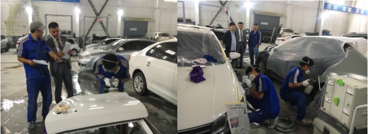 (物產(chǎn)汽貿(mào)公司 訊 崔燕飛、杜慶華/文攝)為進(jìn)一步提升公司售后維修人員業(yè)務(wù)水平,提高公司維修工人崗位技能與實(shí)際操作能力,從而更好的服務(wù)于客戶車輛的維修工作,為顧客安全出行提供有力保障。9月16日上午,總經(jīng)理助理、售后服務(wù)總監(jiān)杜慶華帶領(lǐng)售后管理人員,在朝陽(yáng)車間對(duì)售后服務(wù)部即將轉(zhuǎn)正的4名漆工學(xué)徒進(jìn)行了現(xiàn)場(chǎng)考核。