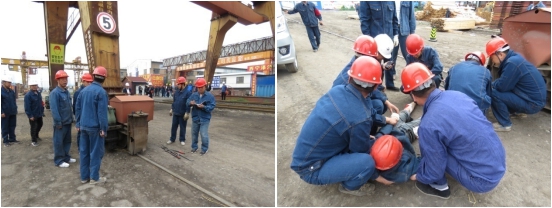 四是組織開展安全技能崗練兵活動(dòng)。為提高公司青年員工的安全生產(chǎn)意識(shí)和發(fā)生機(jī)械傷害時(shí)的應(yīng)急處置能力和自救能力,保障員工生命和公司的財(cái)產(chǎn)安全,公司團(tuán)支部聯(lián)合公司安委辦、安全保衛(wèi)部及裝卸作業(yè)部組織開展了2019年"安全生產(chǎn)月"機(jī)械傷害事故應(yīng)急演練活動(dòng)。通過本次演練,增強(qiáng)了裝卸人員的安全生產(chǎn)意識(shí),對(duì)機(jī)械傷害安全常識(shí)起到了警示教育作用。