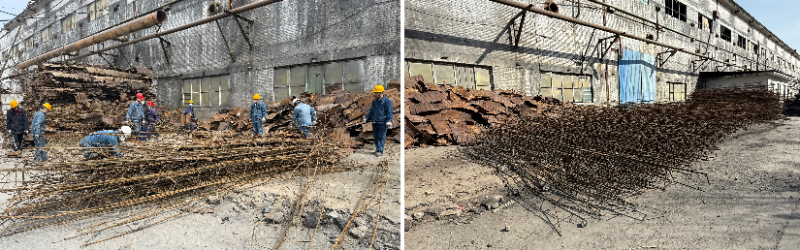 活動中,大家通過分工協(xié)同,密切配合,一部分黨員進行拆卸分裝,一部分黨員撿拾散落鐵皮,一部分黨員轉運碼放,將擋雨板和鋼筋進行分離,同時將鋼筋整齊碼放。經過一下午的辛勤勞動,老系列廠區(qū)一側拆解下來的擋雨板及鋼筋被分離,本次活動不僅對廢舊材料應收盡收,更將可重復利用材料進行二次分揀,真正實現(xiàn)物盡其用。